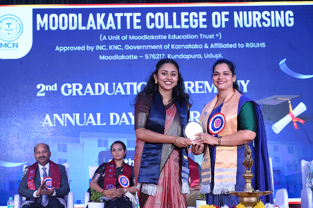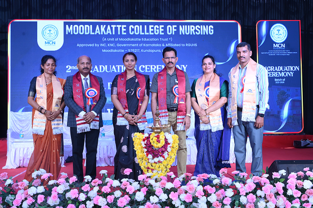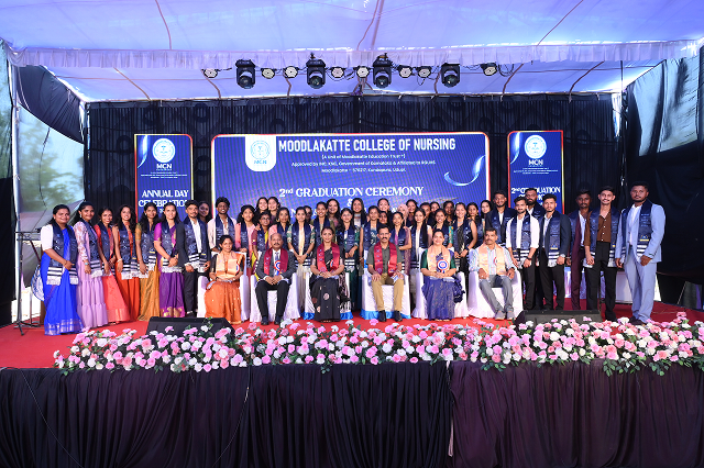 Moodlakatte College of Nursing, Kundapura, organized 2nd graduation Ceremony and annual day celebration on 17th April 2026 at 10:30 AM, at the college campus. The program was graced by eminent dignitaries. The Chief Guest, Prof. Vaishali Sreejith, Senate Member of RGUHS, Bengaluru and Vice Principal of Dr. M. V. Shetty College of Physiotherapy, Mangalore, inspired the graduates with her valuable words. The Guest of Honour, Dr. Chandra Marakala, Administrative Medical Officer, Government General Hospital, Kundapura, addressed the gathering and appreciated the efforts of the institution. The event was presided over by Dr. S. N. Bhat, Director-Academics, IMJ Institutions; Prof. Jennifer Freeda Menezes, Principal; and Prof. Roopashree K S, Vice Principal of Moodlakatte College of Nursing and Mr.Chandrashekara HOD department of pediatrics. During the ceremony, students were awarded their degrees, marking a significant milestone in their academic journey. The Annual Report was presented by the Principal; Prof.Jennifer Freeda Menezes, highlighting the academic achievements and activities of the institution and students who are excelled in academics, sports, and extracurricular activities were awarded . Alumni cell Inaugration was done by the first batch of MCN. All programs were successfully conducted with excellent coordination, leaving lasting memories for everyone present. The events reflected the institution’s commitment to academic excellence and the holistic development of students.