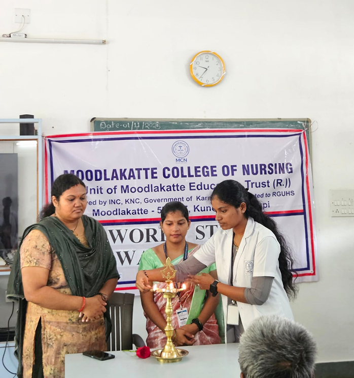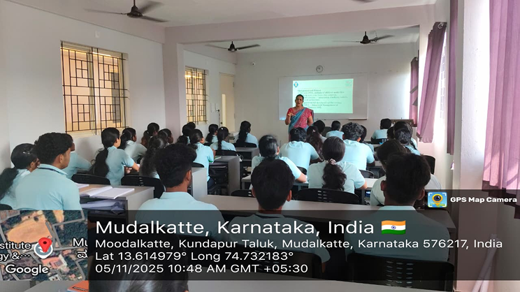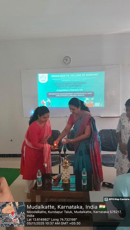 The Department of Child Health Nursing, Moodlakatte College of Nursing, organized a special guest lecture on “Integrated Management of Neonatal and Childhood Illness (IMNCI) Programme” on 5th November 2025 for the 3rd -year B.Sc. Nursing students. The session aimed to explain the criteria and Principles of IMNCI and case management process of IMNCI protocols.The session was graced by the presence of Prof. Mrs. Janet Sequeira who served as the Resource Person. The event was also honored by Prof. Jennifer Freeda Menezes, Principal, and Mrs. Roopashree K. S., Vice Principal, Moodlakatte College of Nursing, Kundapura.The program commenced with the lighting of the lamp, signifying the beginning of the enlightening session. The event was hosted by Prof. Mr. Chandrashrkhara, HOD, Department of Child Health Nursing. Prof. Mrs. Janet Sequeira, delivered an insightful and informative lecture on the Integrated management of Neonatal and Childhood Illness.