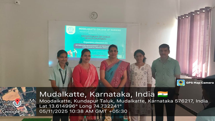 IMNCI criteria, Principles and case process management explained in detail. Explained the role of nurse in treating the children under IMNCI protocols.As a token of appreciation, a memento was presented to the resource person by Prof. Jennifer Freeda Menezes, Principal of Moodlakatte College of Nursing.The program concluded with a vote of thanks, expressing heartfelt gratitude to the management, faculty members, and students for their active participation and support in making the session a success.