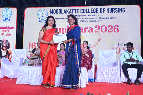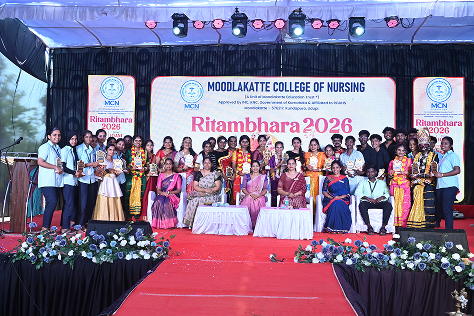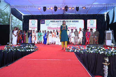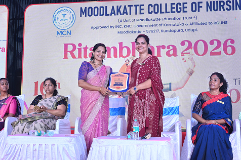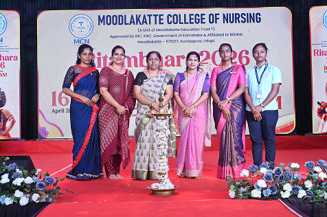 The cultural programme Ritambhara was organized by Moodlakatte College of Nursing on April 16, 2026, at 10:30 AM with great enthusiasm and grandeur. The event reflected the vibrant spirit, talents, and cultural richness of the students. The programme was graced by esteemed guests, including Mrs. Ramya Ravi, Music Teacher at Venkataramana English Medium School, and Mrs. Sookshma Adiga, Senior Assistant Professor at MITK. Their presence added dignity and inspiration to the occasion. The event was also presided over by Prof. Jennifer Freeda Menezes, Principal, and Prof. Roopashree K. S., Vice Principal of Moodlakatte College of Nursing, whose guidance and encouragement played a vital role in the success of the programme. The programme commenced with a warm welcome, followed by a series of cultural performances showcasing music, dance, and artistic talents of the students. Each performance was met with enthusiastic applause from the audience, reflecting the hard work and dedication of the participants. The dignitaries addressed the gathering, appreciating the efforts of the students and emphasizing the importance of cultural activities in overall personality development. The event concluded on a joyful note with a vote of thanks, expressing gratitude to the guests, management, staff, and students for their contribution in making the programme a grand success.