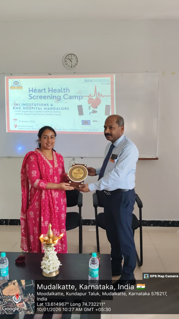 IMJ Institutions, in association with KMC Hospital, Mangalore, conducted a Heart Health Screening Camp for teaching and non-teaching staff at the Health Science Block. Held from 10:00 a.m. to 3:30 p.m., the camp benefited around 140 faculty and staff members.The program was presided over by Dr. S. N. Bhat, with Dr. Samrudha Rai, Consultant Cardiologist, KMC Hospital, as the Chief Guest. The event was inaugurated with the traditional lighting of the lamp and was attended by principals, heads of departments, and staff from various institutions.The event was graced by the presence of Dr. Ramakrishna Hegde, Principal and Brand Building Director of the Engineering College; the Principal of the Nursing College, Prof. Jennifer Freeda Menezes; Dr. Prathibha Patel, Principal of the Degree College; the Principal of the Paramedical College; Prof. Hemalatha.The initiative aimed to promote awareness and preventive care for cardiovascular health and was well appreciated by the participants. The program was organized by Prof. Chandrashekar, HOD of Pediatrics, and Mr. Partha Sarathi J. Palemar. The program was hosted by Ms. Akshatha, Lecturer, College of Nursing.